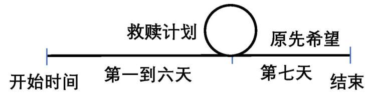 为什么呢?创世记 1:1-5 说,『起初神创造天地。地是空虚混沌,渊面黑暗;神的灵运行在水面上。神说:「要有光。」就有了光。神看光是好的,就把光暗分开了。神称光为昼,称暗为夜。有晚上,有早晨,这是头一日。』 如果我们绝对相信圣经所说的,就知道这是说我们现在的一日,因为有晚上,有早晨。我们谈到创世记时,再详细的说明这一点。请注意,没有说在有光之前究竟有多少天。 因亚当选择了知识善恶树的果子,第六天就启动了那个圆,相当于「救赎计划」,我们正在圆中,所以父做事直到如今,还没有安息。我们不知圆的的大小,就相当于不知何时主再来,『(看哪!我来像贼一样。…』(启示录 16:15) 完成救赎计划后,就回复到神起初创造人的心意,神就照「原先希望 」安息了。当然,如果当初亚当的自由意志选择了生命树上的果子,神就可以照「原先希望 」得了安息。从上面的看见,所以我们会说在逻辑上只能有一个解释。譬如说,有人有不同的解释,用直线取代圆,但这是不行的,因为这时的最后一天就代表了许多现在的一天,且不能有固定的长度,因主的再来像贼一样。在圆上,每一天就是现在的一天。